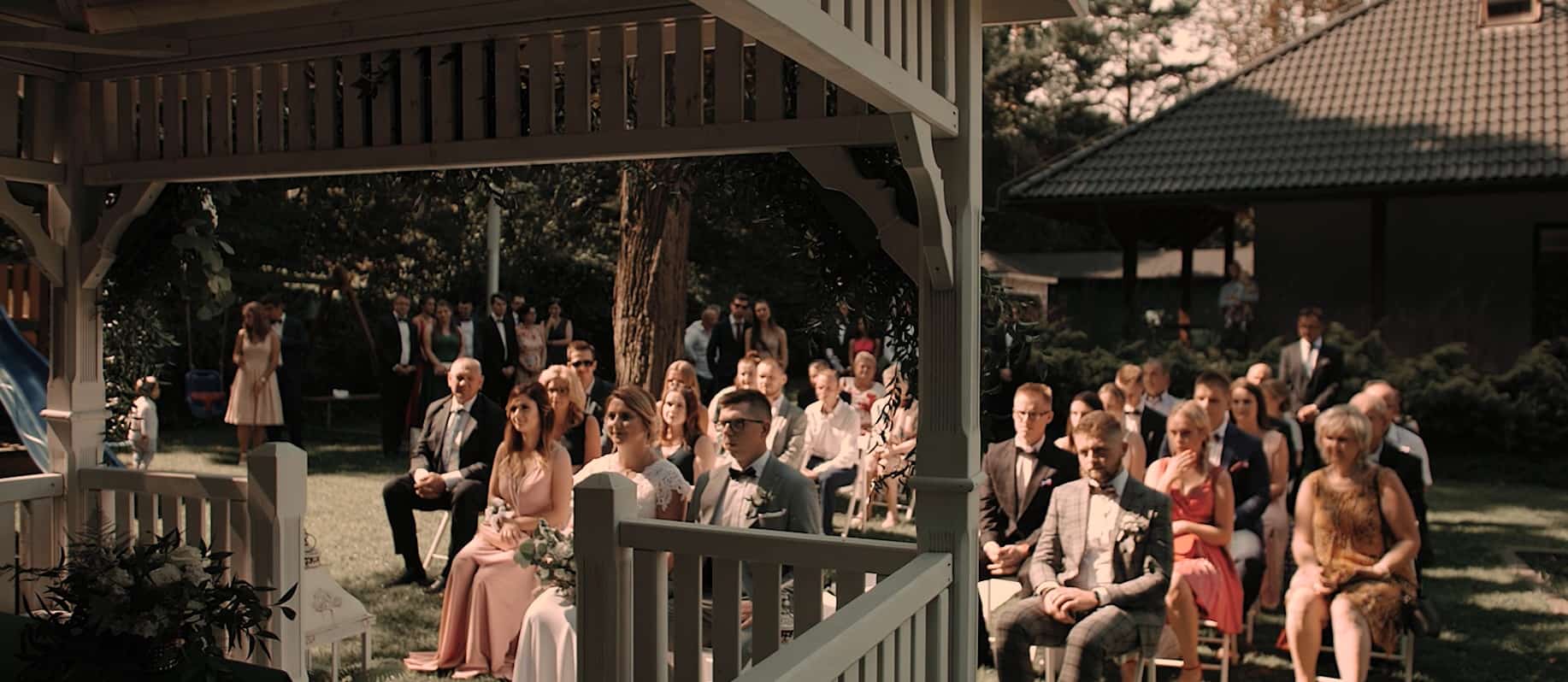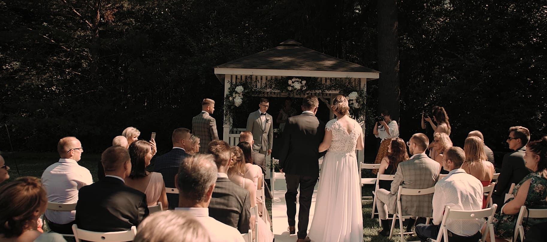 Pogoda podczas ślubu plenerowego zwykle budzi największe obawy, jednak planem B zawsze może być przeniesienie ceremonii do środka. W tym przypadku nie było takiej potrzeby i wszystko wyszło pięknie.