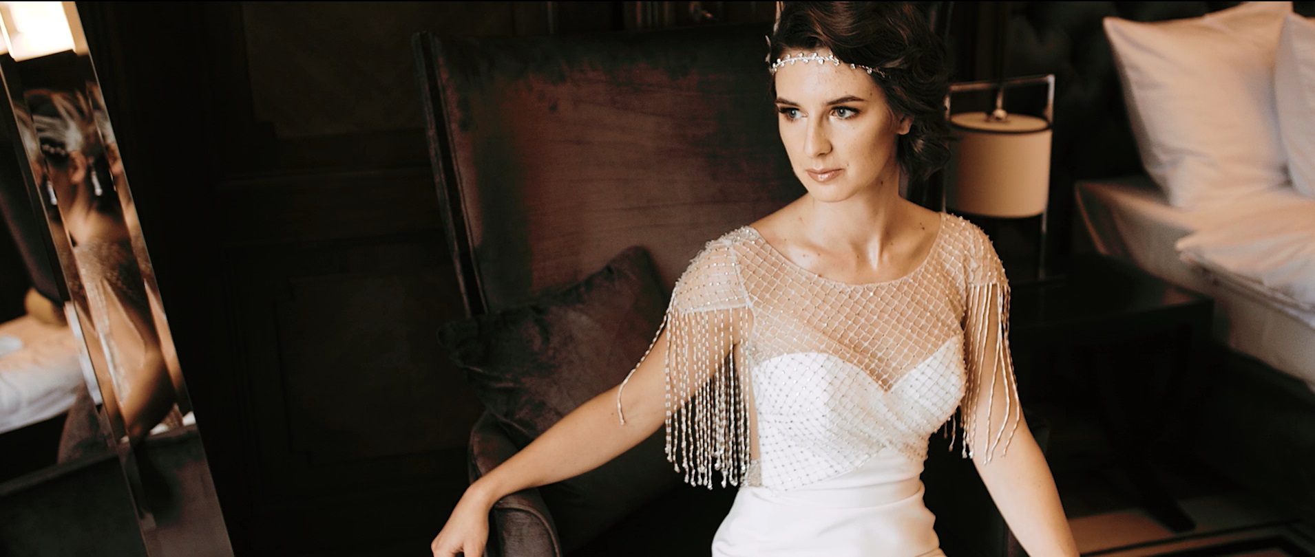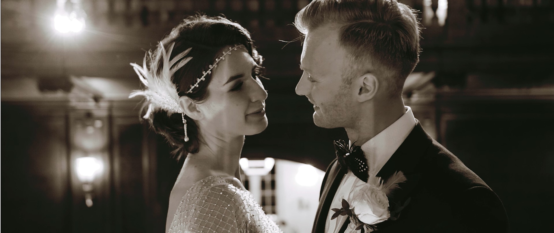 Justyna i Konrad postanowili zorganizować w wyjątkowy sposób swoje wesele, wzorując się na filmie Wielki Gatsby. Choć obecnie mieszkają w Stanach Zjednoczonych na miejsce ceremonii i przyjęcia wybrali Pałac Goetz w Brzesku — jeden z najpiękniejszych pałaców w Polsce. Jest pełen szyku i elegancji, przepełniony klimatycznymi zakątkami, a każde pomieszczenie skrywa w sobie coś niesamowitego, a my zauważamy każdy detal, który na nas sprawia ogromne wrażenie. Stylizacja Justyny i Konrada była obłędna, ale ich emocje oraz miłość dostrzegaliśmy na każdym kroku, czyli to, co jest kwintesencją naszych filmów.